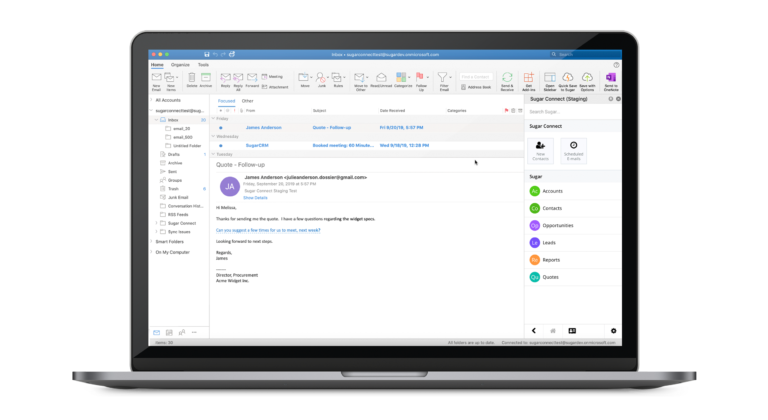 Sugar Connect brings your most important customer experience activities into the email and calendar apps Sales and Services use every day. Keep your CRM, email, and calendar tools up-to-date without having to ever manually enter data. With Sugar Connect, your G Suite or Office 365 account can connect with your Sugar instance to surface relevant data from Sugar as you interact with prospects and customers in real-time. It’s the easiest way to provide the types of truly personalized experiences that create and retain customers for life.